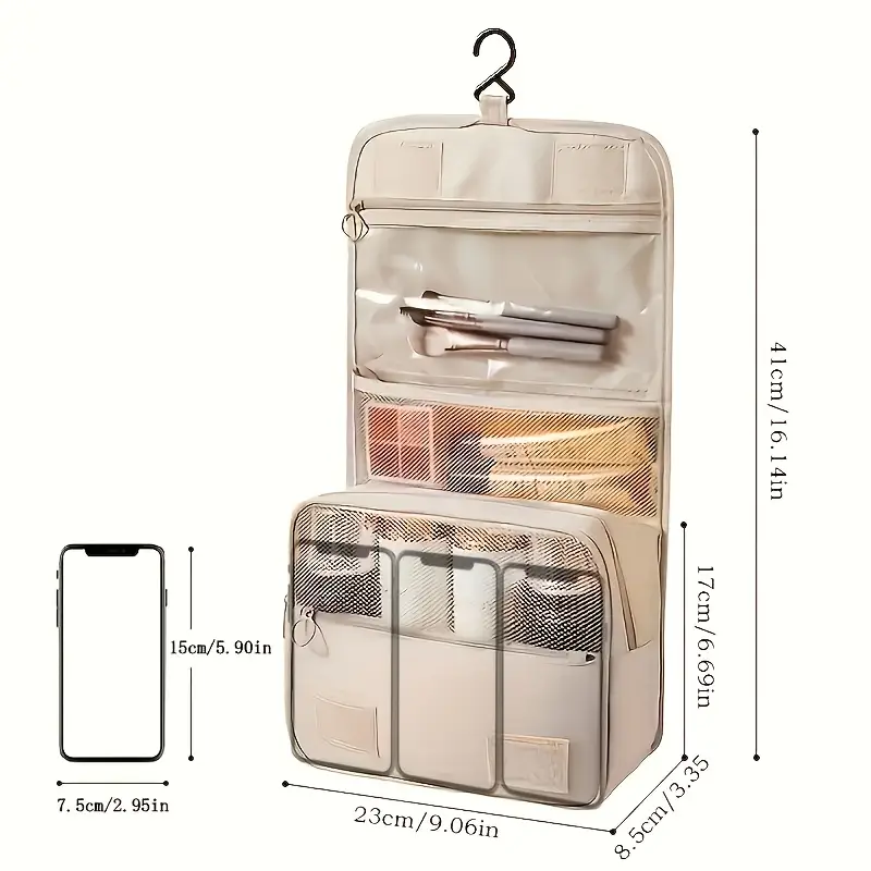 Travel smart and stay organized with this Large Capacity Multifunctional Hanging Toiletry Bag. Designed for maximum efficiency, it features multiple compartments and pockets to store all your travel-sized bottles, skincare, makeup, and grooming essentials. The integrated hanging hook makes it easy to access your items in hotel bathrooms or small spaces, while the durable and water-resistant material keeps everything protected.