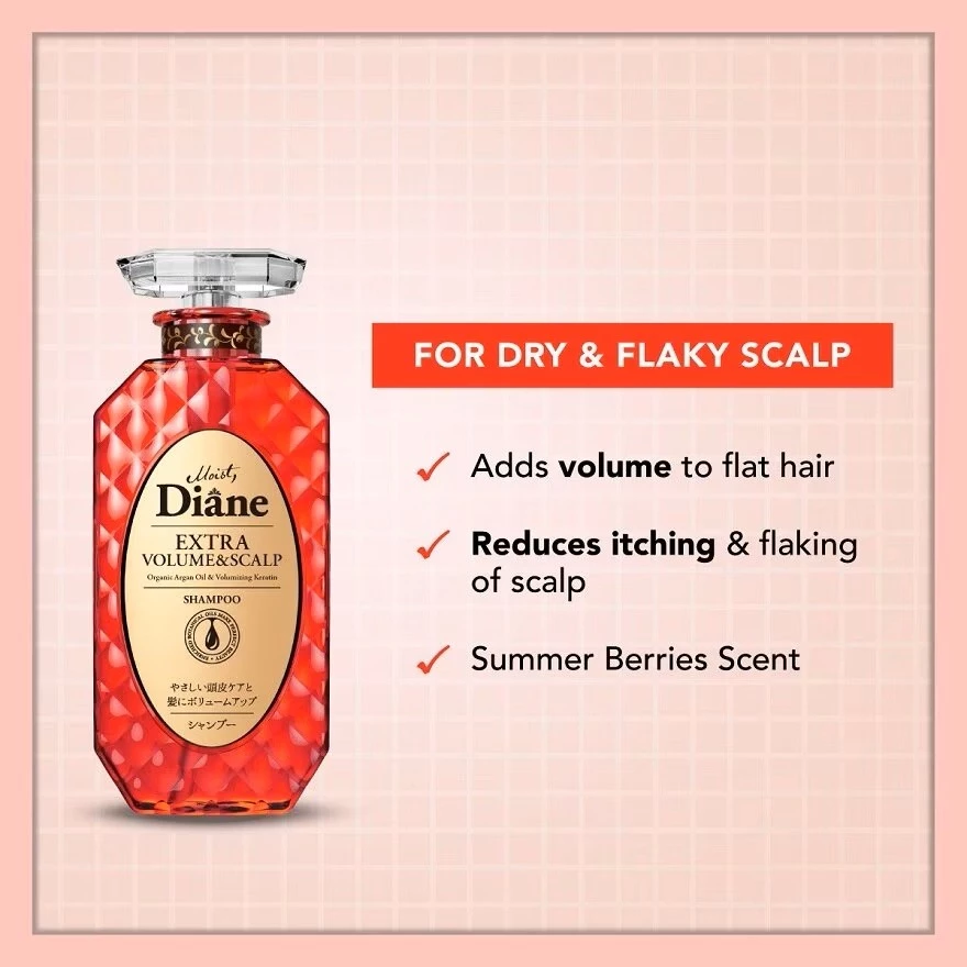 Get fuller, bouncier hair with the MOIST DIANE Extra Volume & Scalp Shampoo. This gentle formula combines cold-pressed coconut oil, volume-enhancing keratin, and plant-based cleansing agents to purify the scalp while adding body and lift to fine, flat hair. Enjoy a clean, refreshed scalp and weightless volume with every wash.